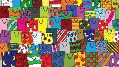 ในภาพมีแพ็คเกจสดใสมากมาย หนึ่งในนั้นคือบัตรของขวัญหนึ่งใบ เริ่มจับเวลาและดูภาพอย่างระมัดระวัง หากคุณสามารถทำได้ภายใน 18 วินาที คุณจะเป็นคนช่างสังเกตมากที่สุด 1%!