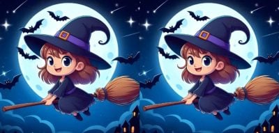 คุณพร้อมสำหรับความท้าทายต่อไปแล้วหรือยัง? ชมภาพสองภาพของแม่มดสาวกำลังบินอยู่บนด้ามไม้กวาดอย่างใกล้ชิด เมื่อมองแวบแรก ทั้งสองภาพจะดูเหมือนกัน แต่ในความเป็นจริงแล้ว มีความแตกต่างสองประการระหว่างสิ่งเหล่านี้ และงานของคุณคือค้นหาพวกมันให้เจอภายใน 11 วินาที ลองปริศนานี้และทดสอบว่าสายตาของคุณคมแค่ไหน!