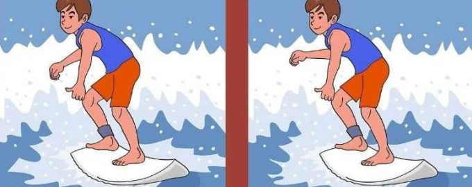 ในภาพ เราเห็นนักโต้คลื่นพิชิตคลื่นบนกระดานโต้คลื่น เมื่อมองแวบแรกอาจดูเหมือนผู้ชายทั้งสองภาพเหมือนกัน แต่เมื่อมองใกล้ ๆ จะชัดเจนทันทีว่าไม่เป็นเช่นนั้น – บางแห่งมีความแตกต่างหลายประการที่ทำให้ภาพแตกต่างกัน