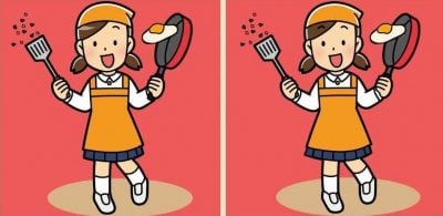 ทั้งสองภาพแสดงเด็กผู้หญิงกำลังทำไข่คน และดูเหมือนว่าเธอกำลังเดือดร้อนเพราะไข่ดาวกำลังจะหล่นลงบนพื้นจากกระทะ