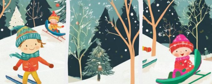 นี่คือเด็กๆ ที่มีความสุขจำนวนหนึ่งเพลิดเพลินกับหิมะและอากาศฤดูหนาวที่แท้จริงในป่า เด็กๆ ไปเล่นเลื่อนหิมะ และเพื่อนคนโตก็ไปเล่นสกี